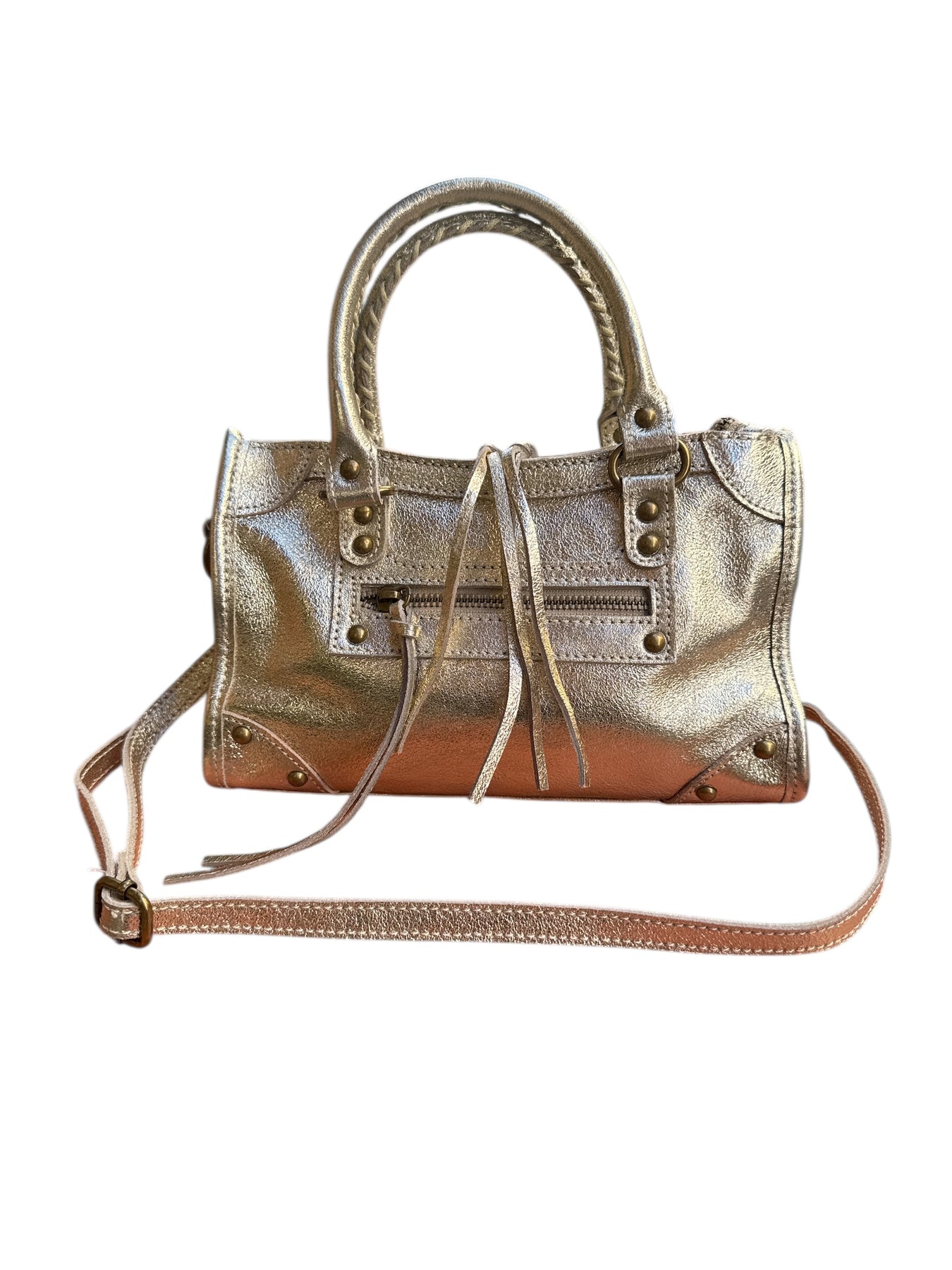 Sac cuir Judith SMALL Gold, fermeture zippée, anse main + anse bandoulière cuir amovible.