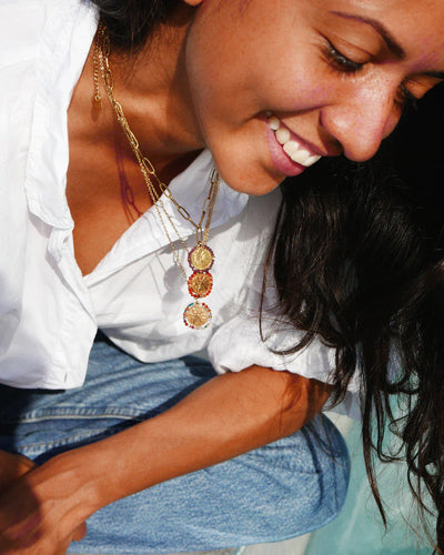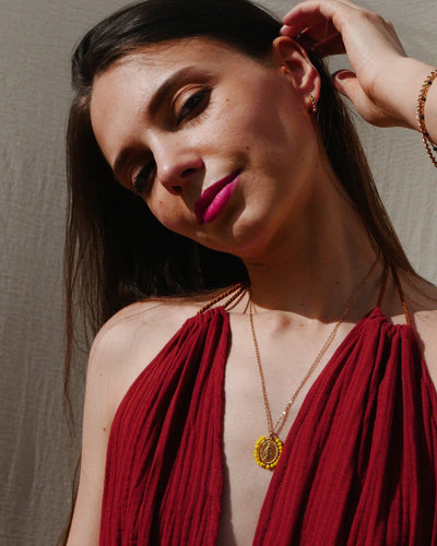 Toutes les créations PALAS ont été conçues à Paris et soigneusement assemblées à la main dans notre atelier de Lisbonne. Elles sont fabriquées en acier inoxydable 18 carats, matériau hypoallergénique et résistant à l'eau. Profitez de vos bijoux toute l'année sans craindre de les abimer.