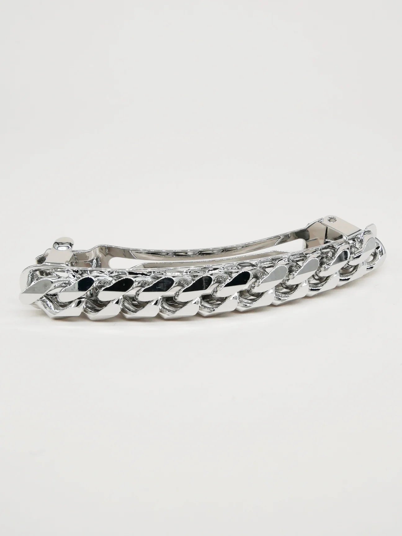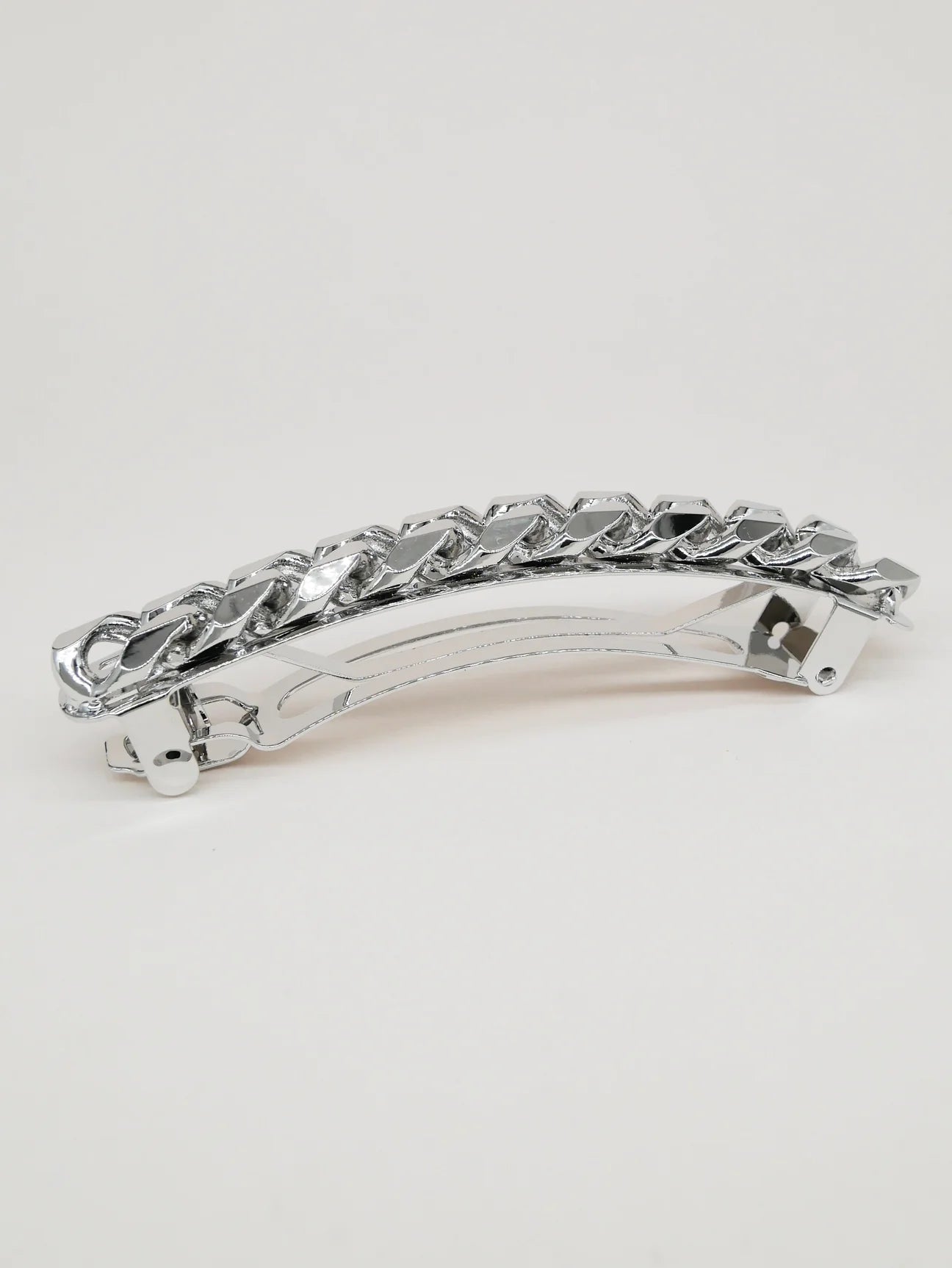 BARRETTE en forme de chaîne, elle mesure 8 cm de long. C’est un accessoire de mode qui rappelle la gourmette. Elle est fabriquée à la main dans un atelier près de Florence, dans le nord de l'Italie.