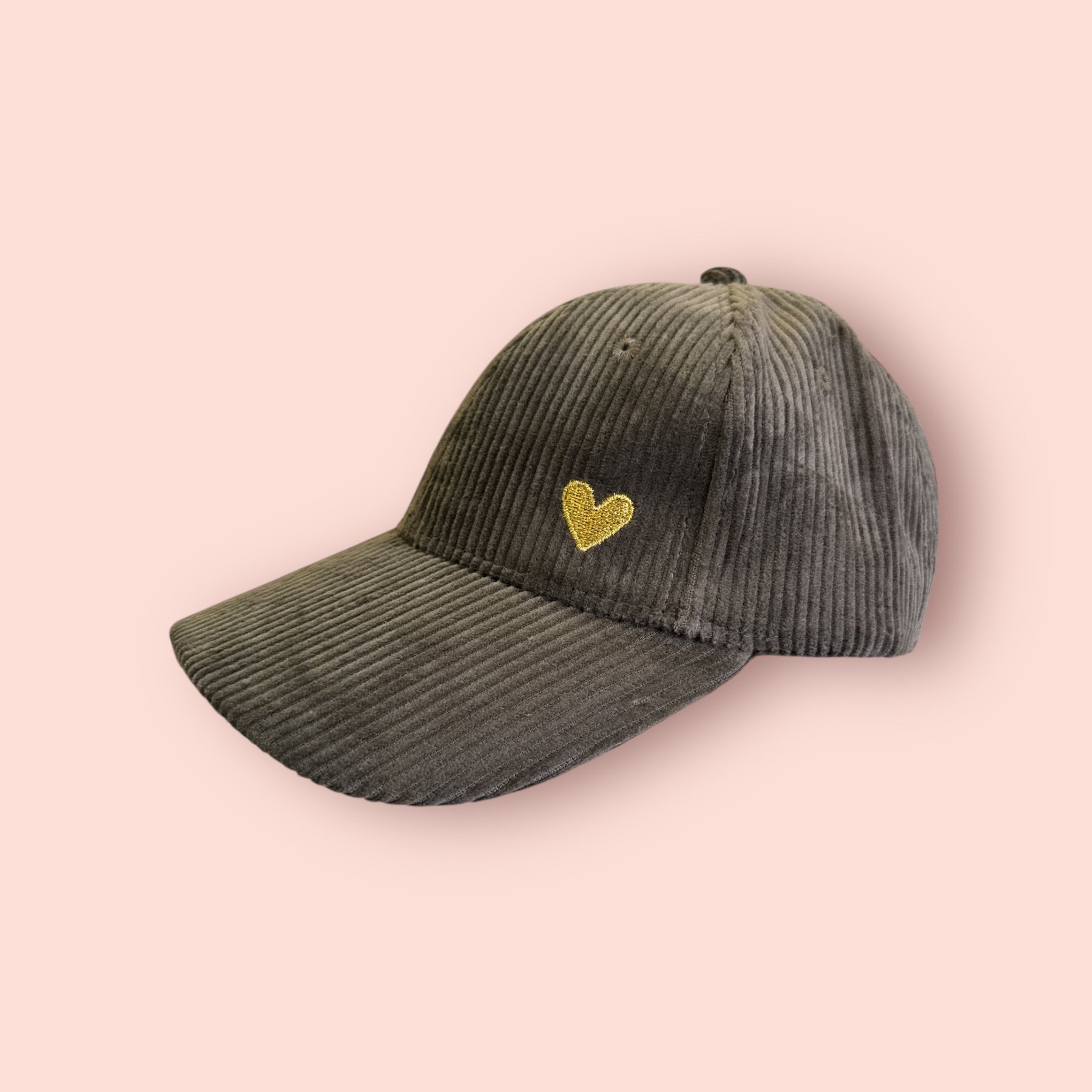 Casquette velours cœur brodé Kaki